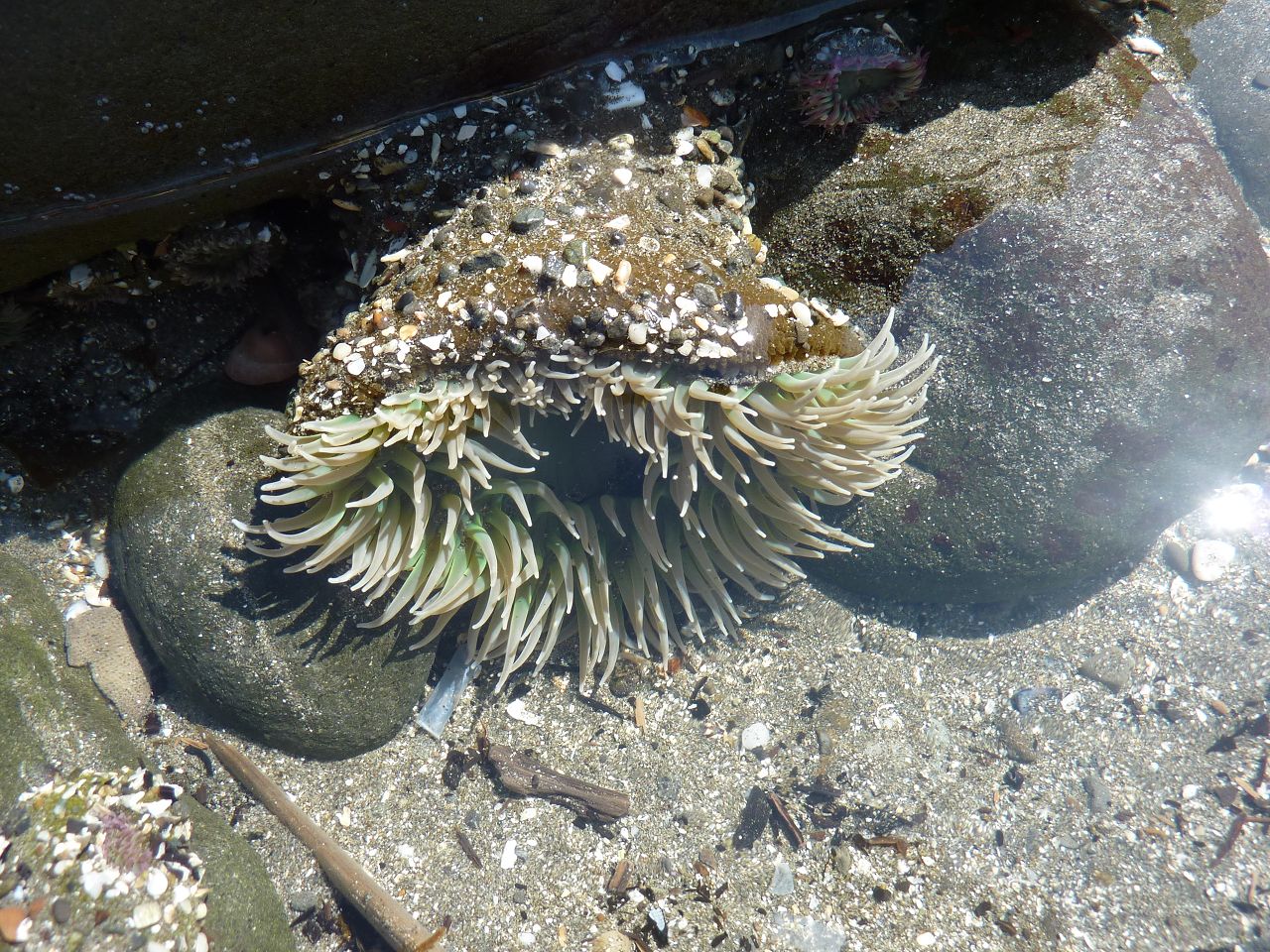 Crescent City ist eine schöne, kleine und gemütliche Stadt mit einer wunderschönen Küste. Auf unserer bisher schönsten Fahrradfahrt auf dieser Reise entdeckten wir den Point St. George, die ehemalige Heimat der Tolowa Indianer. Bei Ebbe kann man auf dem Meeresgrund über die Steine klettern. In den Gezeitenpools sieht man Seeanemonen, kleine Taschenkrebse, Einsiedlerkrebse, Seesterne, Muscheln und Schnecken. Sehr interessant ist das angespülte Treibholz. Da lässt sich jede Menge Material für Kunstwerke sammeln.