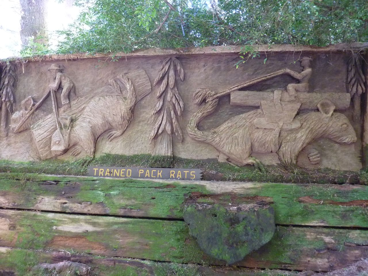 Am Ende des Rundweges durch den Trees of Mystery wird die Geschichte vom legendär riesengroßen und titanenstarken Paul Bunyan, einem amerikanischen Holzfäller, erzählt. Eine der größten Figuren von ihm und seinem blauen Ochsen Babe steht vor dem Eingang des Parks. Die Geschichte wird durch große Holzreliefs und Figuren erzählt, die mit der Kettensäge geschaffen wurden, wunderschön. Ganz zum Schluss kann man sich noch die größte, private Sammlung von Artefakten der amerikanischen Ureinwohner ansehen.