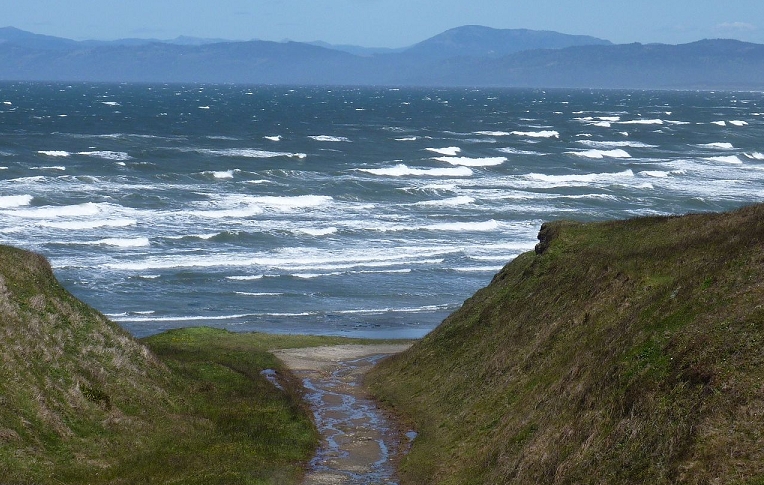 Auf einem sehr anstrengenden Abschnitt des Coastal Trails südlich der Klamath-Mündung hat man herrliche Aussichten auf die Küste und den Ozean. Die Seelöwen badeten jetzt auf der Meeresseite. Am Strand befindet sich ein zeremonieller Ort der Yurok, der nach dem Winter gerade wieder in Schuss gebracht wurde. Überhaupt ist hier in der Gegend großes Putzen angesagt, damit für die in Kürze beginnende Saison alles vorbereitet ist.