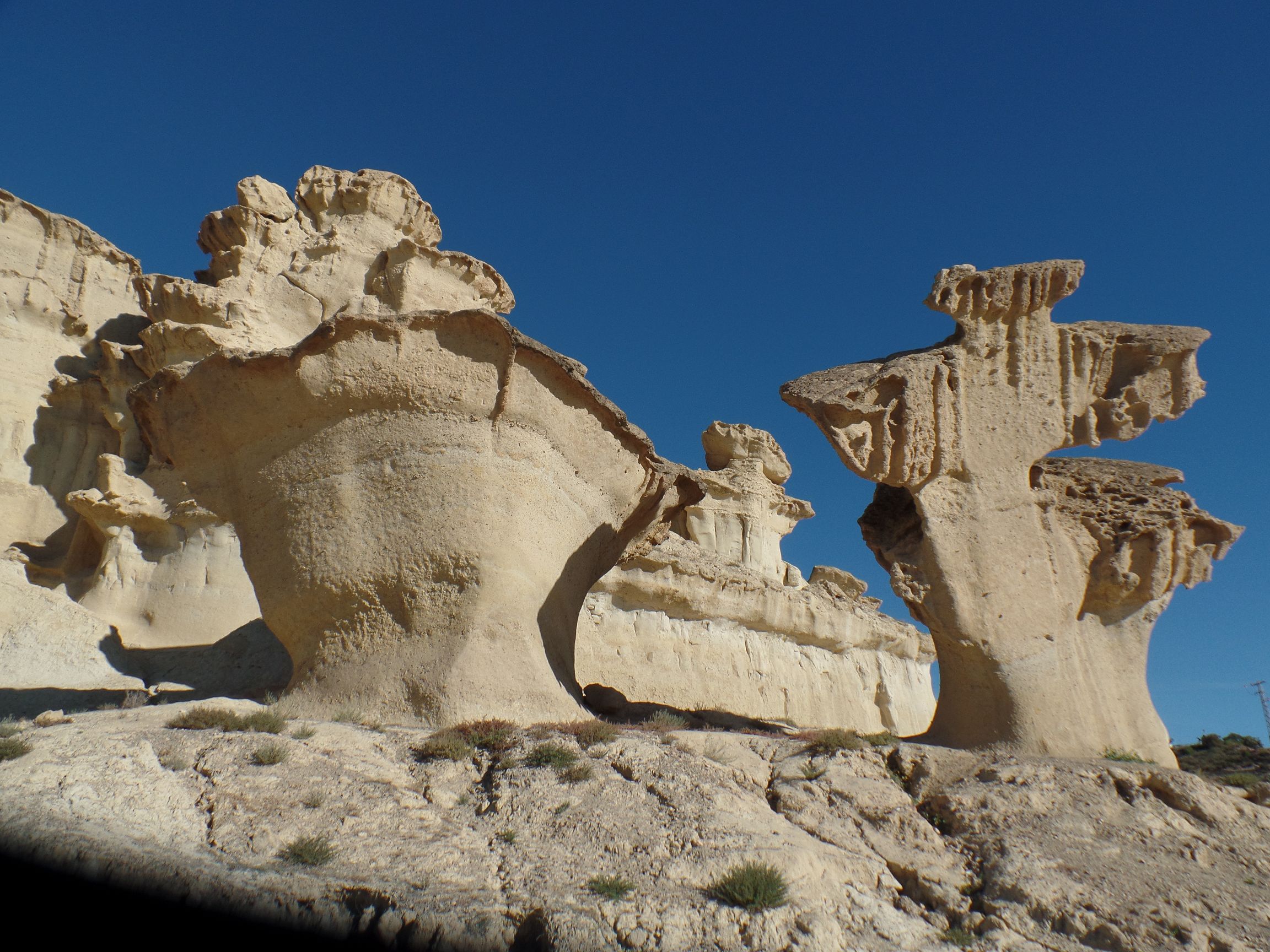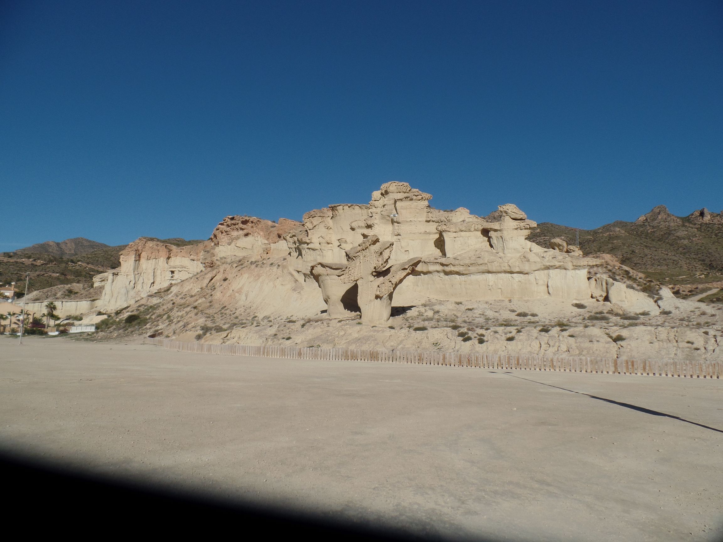 An einem Tag hatten wir uns ein Auto gemietet. Damit fuhren wir nach Bolnuevo, um uns nur umzusehen. Dabei trafen wir auf eine wunderschöne Felsformation, direkt am Strand. Es ist das Naturdenkmal „die Tonlecken von Bolnuevo“. Tektonik und Geologie haben diese Schönheit geschaffen. So etwas ist so selten, dass sie zu einem der bedeutendsten Landschaften, Kulturstätten und wissenschaftlichen Wahrzeichen des gesamten Mittelmeerraumes zählen.