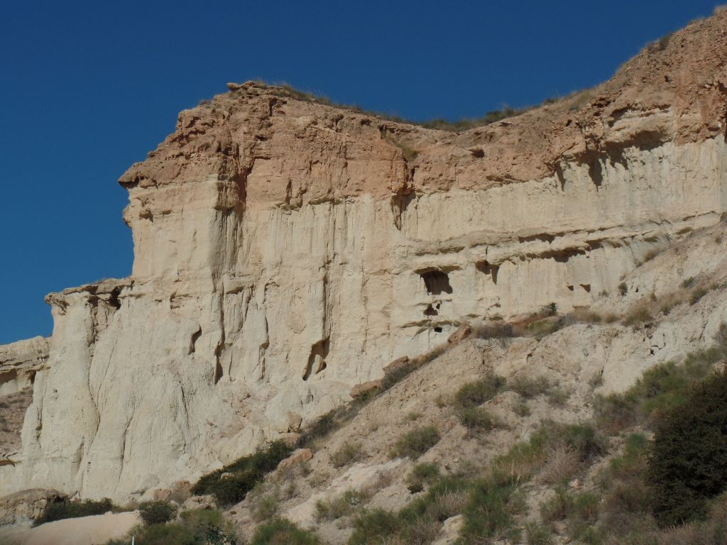 Vor 2,5 Millionen Jahren flossen dann aus den Kanälen, die die Landschaft durchzogen und durch weitere tektonische Ereignisse gebildet wurden, rote Sedimente aus den Bergen der Sierra de las Moreras ins Meer und lagerten sich dort ebenfalls ab. Aufeinanderfolgende Meeresspiegelschwankungen führten zur Bildung einer Steilküste. Die stetigen Wellenbewegungen und Winde an der Küste formten so die nun freiliegenden Sedimente.