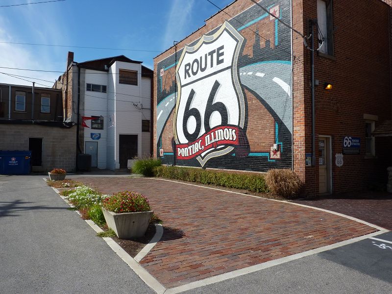 Pontiac glänzt mit seiner Downtown und seiner interessanten Hall of Fame und Museum. Vor dem Museum liegt ein Stück des Klinkerplasters, mit dem die Historic Route 66 streckenweise ausgestattet war, bevor es mit einer Betondecke überzogen wurde. Ein als Besucherzentrum umgestalteter alter Schulbus, total crazy, lässt die Besucher staunen. Rund um das Museum stehen noch die kleinen alten Häuser. Aber auch die großen Bauten, wie das Gerichtsgebäude aus dem Jahre 1875, beeindrucken.