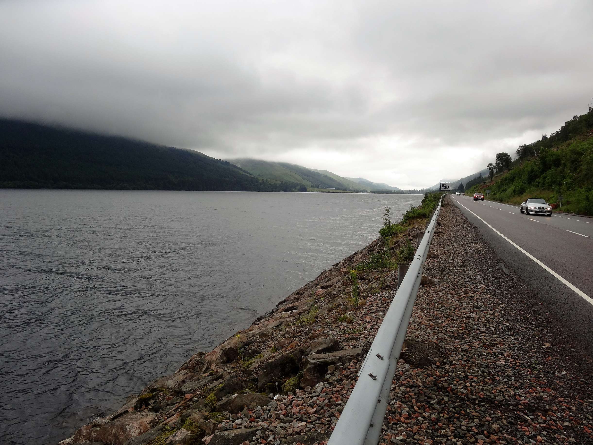 Am nächsten verregneten Tag mit nächtlichen Gewittern setzten wir unsere Rundfahrt durch Schottland fort. Dafür mussten wir die Strecke nach Fort Augustus noch einmal mit dem Motorhome fahren, um nach Fort William zu gelangen. Diesmal erlebten wir das geheimnisvolle Loch Ness, nebelverhangen und ruhig. Die Wasseroberfläche bewegte sich kaum, aber hier und da trieben mysteriöse Wellenformationen über sie hinweg. Das haben wir noch bei keinem anderen See beobachtet. Sind diese Wellenformationen, bei etwas rauerer See wohl noch eindrucksvoller, der Hintergrund für die Nessie-Geschichten? Nessie ist keine Erfindung der Neuzeit. Erste Berichte sind schon sechshundert Jahre alt.