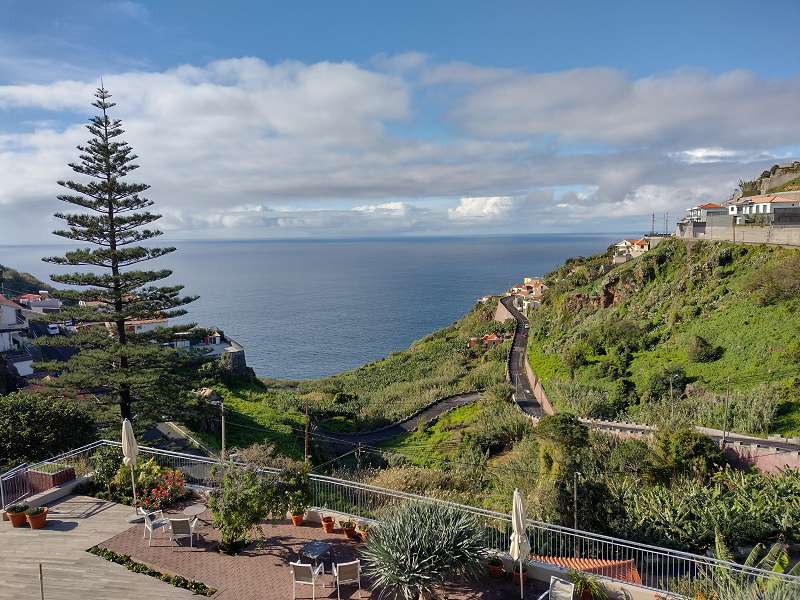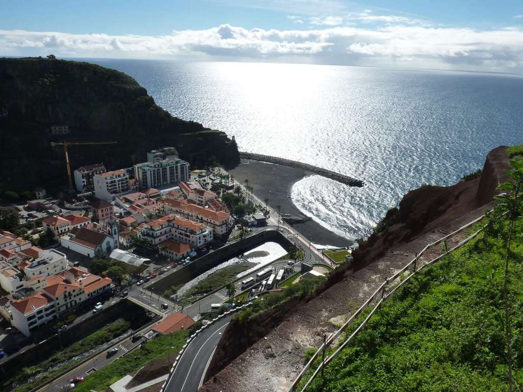 Nun geht die Tour wieder zum Meer. An den Nordhängen breiten sich die letzten Lorbeerwälder aus, die vor den Kolonisierung Madeiras noch die gesamte Insel bedeckten. Vom Meeresspiegel bis in 1000 Meter Höhe wachsen heute Eukalyptusbäume. Die hatte man gepflanzt, weil der Wald immer kleiner wurde und man Holz für die Zuckerrohrverarbeitung brauchte. Eukalyptus wächst sehr schnell, ca. 5m pro Jahr. Das war ideal.