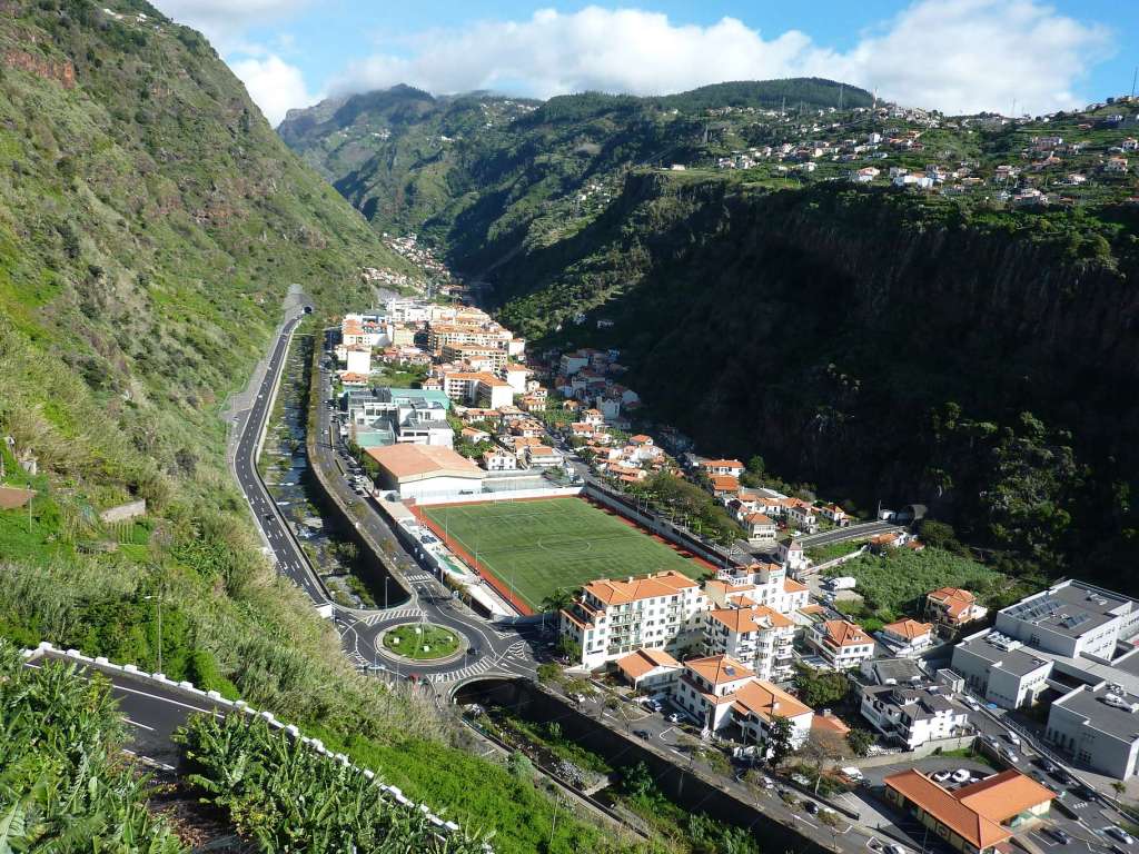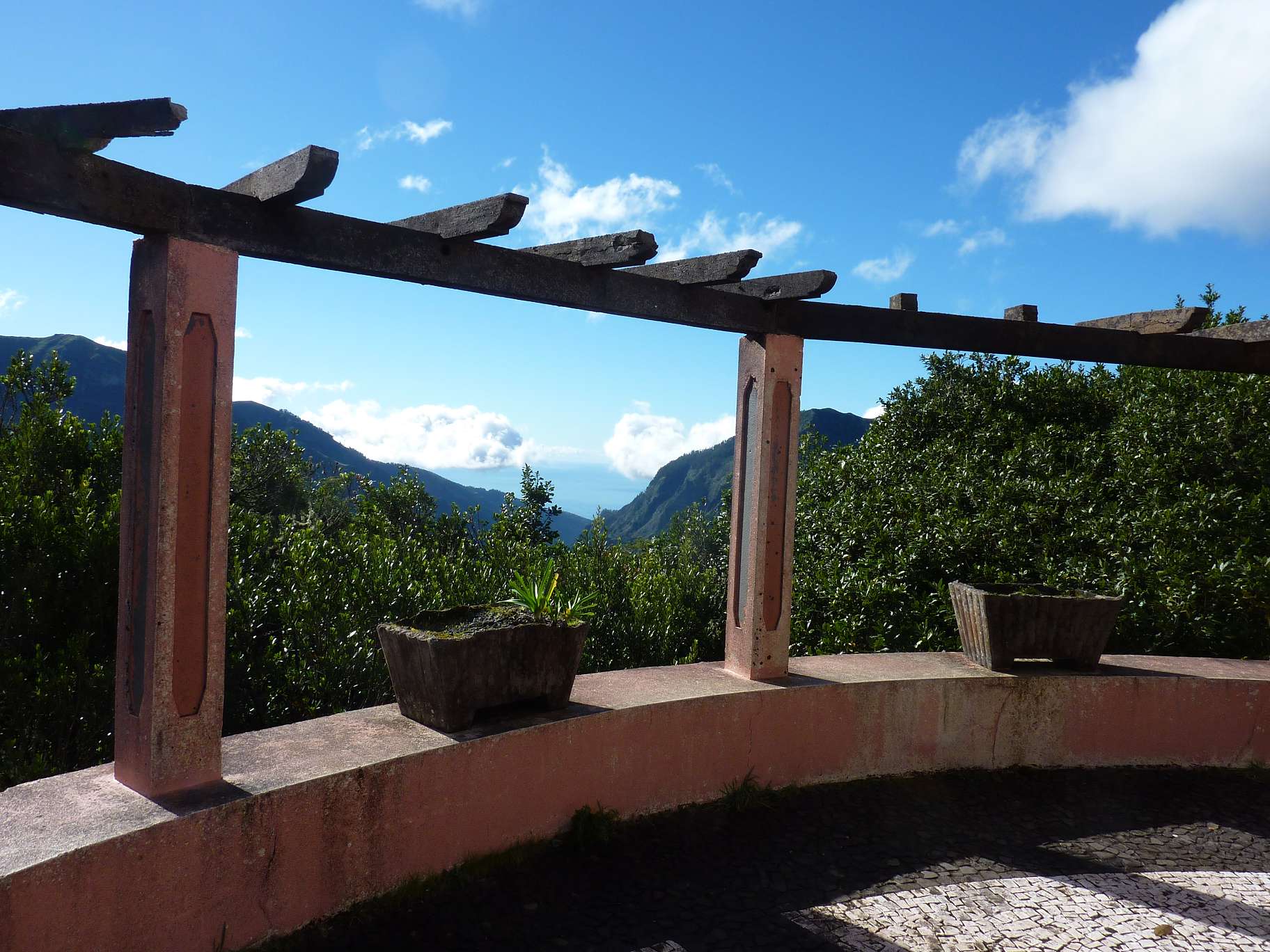In Ribeira Brava hielt der Bus als nächstes. Von dort aus geht es ins Landesinnere zum zentralsten Punkt der Insel Madeira, Encumeada. Es ist nur ein Aussichtspunkt mit Souvenirbude und einem kleinen Café, aber man kann in Richtung Süden bis zum Meer und in Richtung Norden bis zum Meer sehen. Madeira misst in der Nord-Südausdehnung nur ca. 22km. In der West-Ost-Richtung sind es immerhin ca. 57km. Der Gesamtumfang Madeiras beträgt ca. 150km. 150 Kilometer? Die Zahl kennen wir doch. Genauso lang ist die Ringstraße um den Fuß des Ätna, dem Vulkan auf Sizilien.