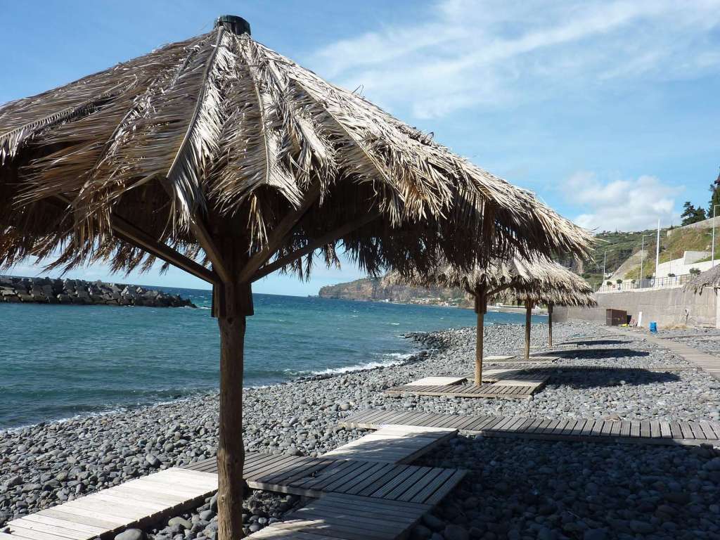 Calheta im Südwesten Madeiras war das letzte Ziel der Fahrt. Hier findet man den einzigen künstlichen gelben Sandstrand der Insel. Der gelbe Sand kam von der bewohnten Nachbarinsel Porto Santo. Ein alter Schornstein und ein paar Teile einer Dampfmaschine erinnern daran, dass hier einst eine Zuckerfabrik ihren Dienst tat. Sonst gibt es in Calheta nicht viel zu sehen, außer ein paar Hotels.