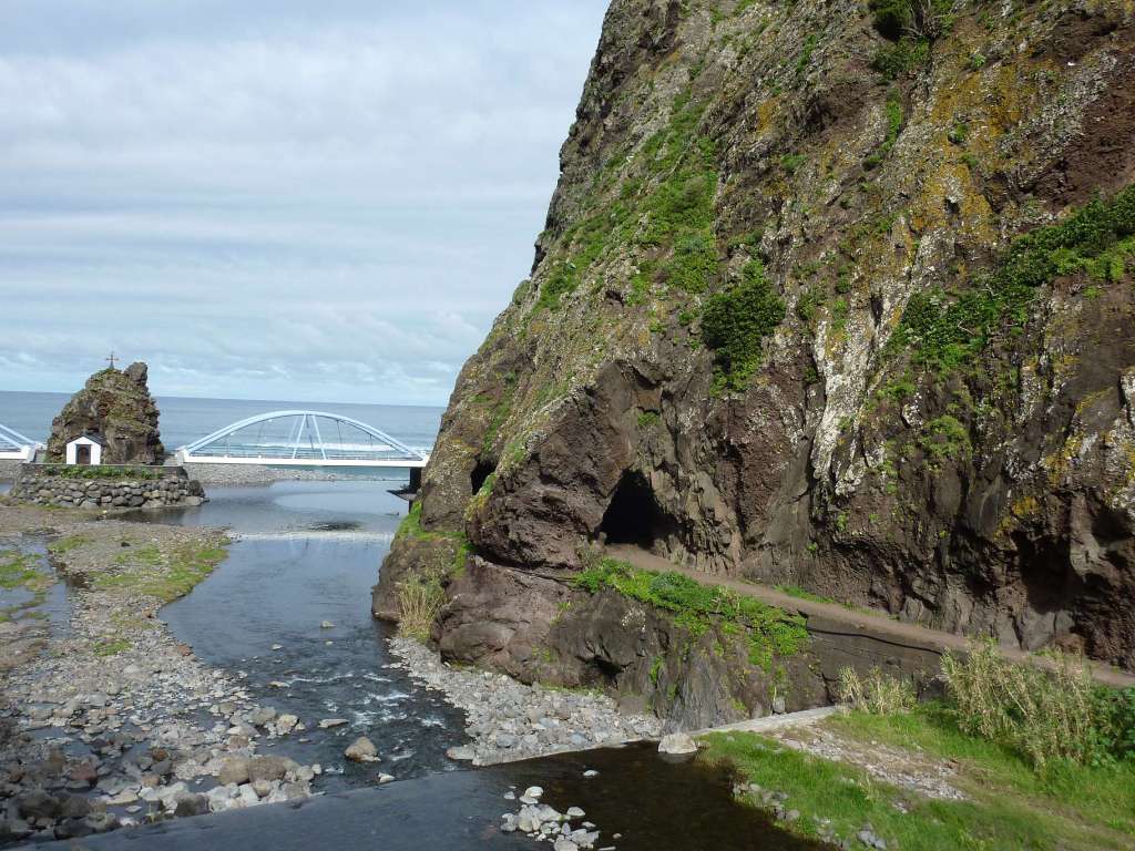 An der Nordküste angekommen, besuchten wir Sao Vicente, wo die Bauern vor langer Zeit einen Tunnel in den Felsen gegraben haben, fuhren durch Seixal, um 2 Stunden Mittagspause in Porto Moniz zu machen. Seit einigen Jahren führt eine neue, gut ausgebaute Straße mit vielen Tunneln nach Porto Moniz. Die alte Straße an der Küste entlang ist gesperrt. Durch die häufigen Steinschläge, die Straße wurde in die Lavafelsen gehauen, war sie zu gefährlich geworden. Porto Moniz ist berühmt für seine natürlichen Lavabecken, die zum Schwimmen freigegeben sind. Das Wasser hat ca. 20 Grad Temperatur, wenn nicht ein Sturm für Wasseraustausch gesorgt hat. Ein kleines Aquarium zeigt die Unterwasserwelt vor Madeiras Küsten.