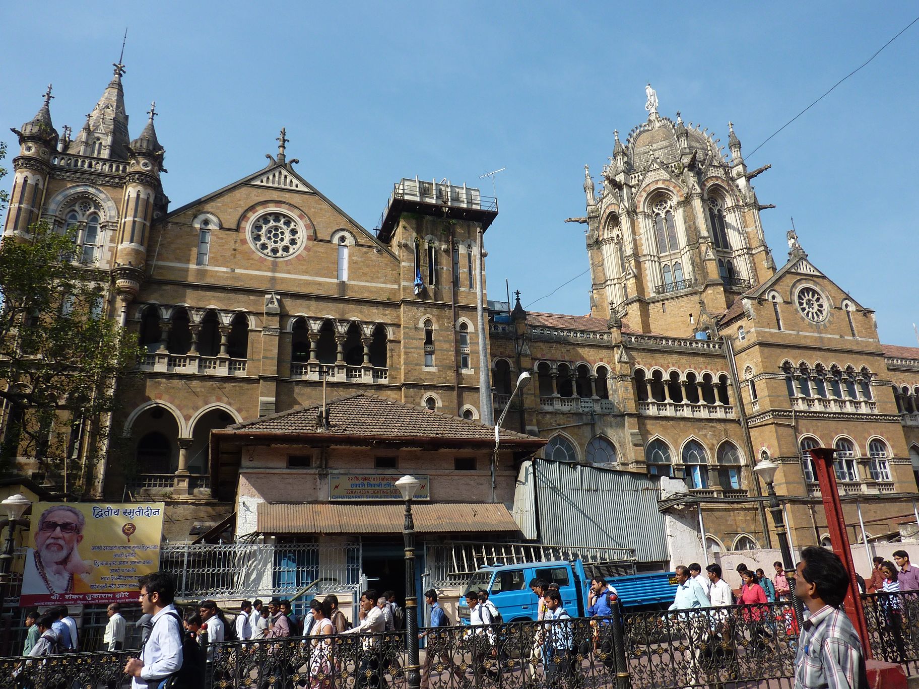 Da hier nichts weiter zu sehen war, suchten wir uns das nächste Taxi, dass uns zum Viktoria Terminus brachte. Der Chhatrapati Shivaji Terminus, wie der Bahnhof auf indisch heißt, fiel ja vor einigen Jahren terroristischen Anschlägen zu Opfer. Davon ist nichts mehr zu sehen. Das altehrwürdige Gebäude ist sehr imposant, aber außer dem Bahnhofsbereich, der irgendwann um einen Neubau erweitert wurde, kann man nichts weiter besichtigen. Überall hängen Überwachungskameras und wird Streife gelaufen.