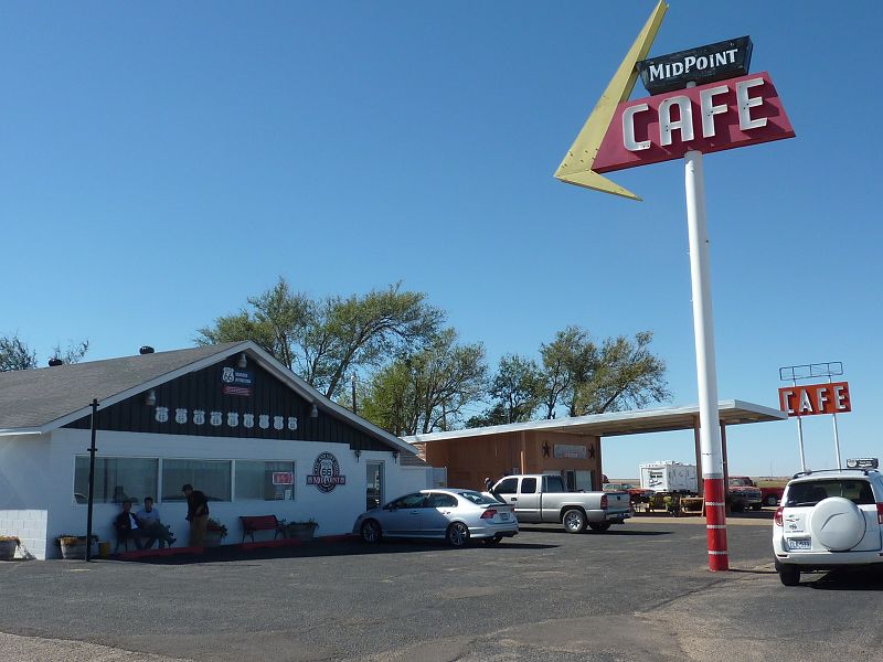 Was gibt es noch? Wer an die USA denkt, denkt auch an die Route 66, die Mutterstraße, ein Mythos. Es war die erste Straße, die den Osten des Landes mit dem Westen verband. Sie beginnt in Chicago und reicht bis Los Angeles. Auf der Route 66 zogen in der Wirtschaftskrise viele Menschen in der Hoffnung auf ein besseres Leben aus dem armen Osten oder aus der Staubschüssel Oklahoma in den verheißungsvollen Westen. Die originale Route 66 (historic Route 66) führte durch alle Dörfer und Städte, die auf ihrem Weg lagen. Bald baute man jedoch Umgehungsstraßen, die heutige Route 66, wobei der größte Teil der Straße durch eine gesichtslose Interstate ersetzt wurde.