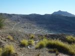 Am Ende des 3,5km langen Victoria MineTrails, der nur ein Trampelpfad durch die Wüste ist und mehrere Wasserläufe kreuzt, liegt die Victoria Mine. Mitten im Nirgendwo, in den Hang der Sonoyta Mountains, hat jemand ein Loch gebuddelt. Uns warfen sich zwei Fragen auf: Warum gerade an dieser Stelle? und: Was hat derjenige gesucht und ist er fündig geworden? Jedenfalls lagen auffällig viele grüne Steine in der Gegend herum, kupferhaltiges Gestein? Jede Menge Quarz ist aus dem Berg geschafft worden. Der Abraum liegt noch vor der Mine. Von dort aus hat man einen herrlichen Blick über die Landschaft mit ihren riesigen Kakteen.