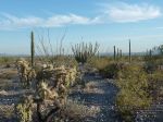 Die Sonora Wüste ist die grünste und vielfältigste Wüste der Welt. Im Pfeifenkaktus-Park leben 28 verschiedene Kakteenarten, den Rest machen verschiedene Buscharten und die Ocotillos aus. Die Ocotillos sind merkwürdige Gewächse. Sie haben viele schlangenartige, unverzweigte Triebe, die voll von Dornen sind. Deshalb sehen sie aus wie Kakteen. Da die Ocotillos jedoch nur grün sind, wenn sie einige Tage zuvor Wasser bekommen haben und dann bald wieder „in den Schlaf“ gehen, sind es gewöhnliche Büsche. Jedenfalls „verschlafen“ die Ocotillos die meiste Zeit ihres Lebens und sehen eher tot aus. Sie sind mindestens so beeindruckend wie die Saguaro- und Pfeifenkakteen.