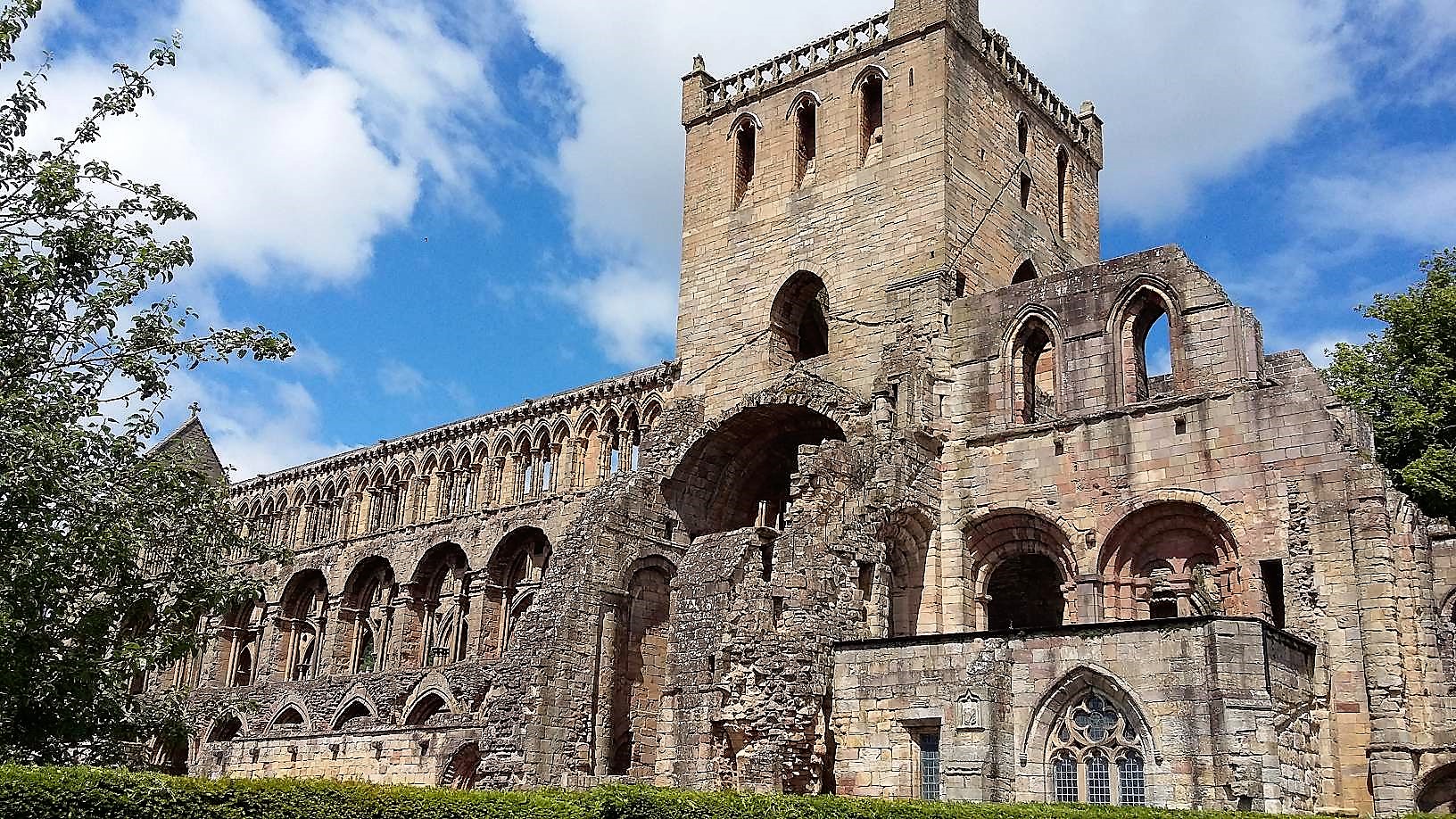 Für die Abbey von Jedburgh wird Eintritt verlangt, deshalb besichtigten wir sie nur von außen. Es sind nur noch Ruinen von ihr übrig. Die Abbey stand bei ihrem Bau im 12. Jahrhundert an der englisch-schottischen Grenze. Die Engländer fielen dann im 14. Jahrhundert immer wieder bei den Schotten ein und zerstörten diese Abbey und weitere Abbeys, wie die von Kelso, Melrose und Dryburgh, mehrfach und gründlich. Jedburgh Abbey war die reichste Abbey.