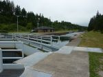 In St.Peters gibt es die einzig funktionierende Schleuse auf Nova Scotia und es ist die Einzige in ganz Nordamerika, die auf beiden Seiten 2 hintereinander liegende Schleusentore hat. Das hängt irgendwie mit dem Tidenhub zusammen, denn auf der einen Seite liegt das Meer, auf der anderen Seite der Bras d´Or Lake. Da kann schon mal der Druck auf die Schleusentore etwas höher sein.