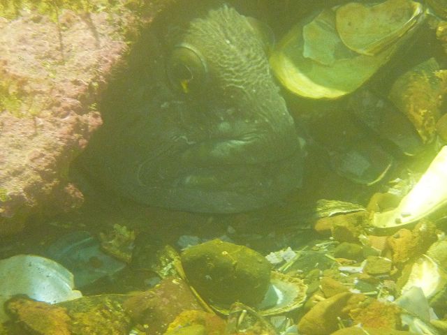 Ein festes Ziel, das wir ins Auge gefasst hatten, war die Insel Janvrin. Diese Insel kennt kaum ein Tourist. Eigentlich finden nur natur- und tauchbegeisterte, meist deutsche Urlauber, dorthin. Vor über 25 Jahren kamen Arthur und Maria Vollmer aus Deutschland hierher und bauten sich eine Lodge auf. Ihr Sohn Ingo betreibt mit seiner Frau Anita seit langer Zeit eine Tauchbasis. Wir wollten bei Ihnen tauchen und sehen, wie die Unterwasserwelt vor Nova Scotia aussieht, die dank des kalten Labrador-Stromes schon arktischer Natur ist. Bis jetzt sind wir nur „Warmwasser-Taucher“ gewesen. 2 Tauchgänge am Heck des Wracks der „Arrow“, was bis zum Jahr 1970 einmal ein Tanker war, und ein Tauchgang nahe einer Insel, die Seehunden zur Ebbe einen Ruheplatz bietet, vermittelten uns einen sehr kleinen Eindruck, da wir nur 2 volle Tage dort waren. Zu den Stars am Wrack gehören ein Seewolf und ein ziemlich alter Hummer. Aber auch Seeteufel, Makrelen sowie Kelb und andere Kaltwasser-Bewohner machen das Tauchen in diesem Gebiet interessant.