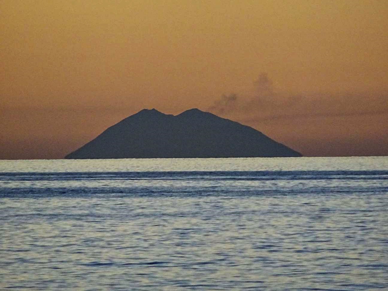 Da es von der Abfahrt in Pizzo bis nach Tropea noch mehr als 30km sind und wir in Pizzo wieder auf die Autobahn fahren müssen, wenn wir zur Fähre nach Sizilien wollen, suchten wir uns einen Stellplatz in Pizzo. Den fanden wir unten am Strand am Lido Delfino. Da jetzt im Herbst das Strandbad geschlossen hat, ist das kein Problem. Gleich nebenan steht eine Pizzeria, aus der es am Abend lecker duftet. In Sichtweite ragt der Vulkan Stromboli aus dem Meer, der Teil der Liparischen Inseln ist. Am Ankunftsabend zeigte sich der Vulkan wolkenlos. Mit dem Fernglas war sogar auszumachen, dass von der rechten Hinterseite Rauchwolken aufsteigen. Da tut sich was im Stromboli. Wir werden sehen, dass wir irgendeine Bootsfahrt dorthin bekommen.