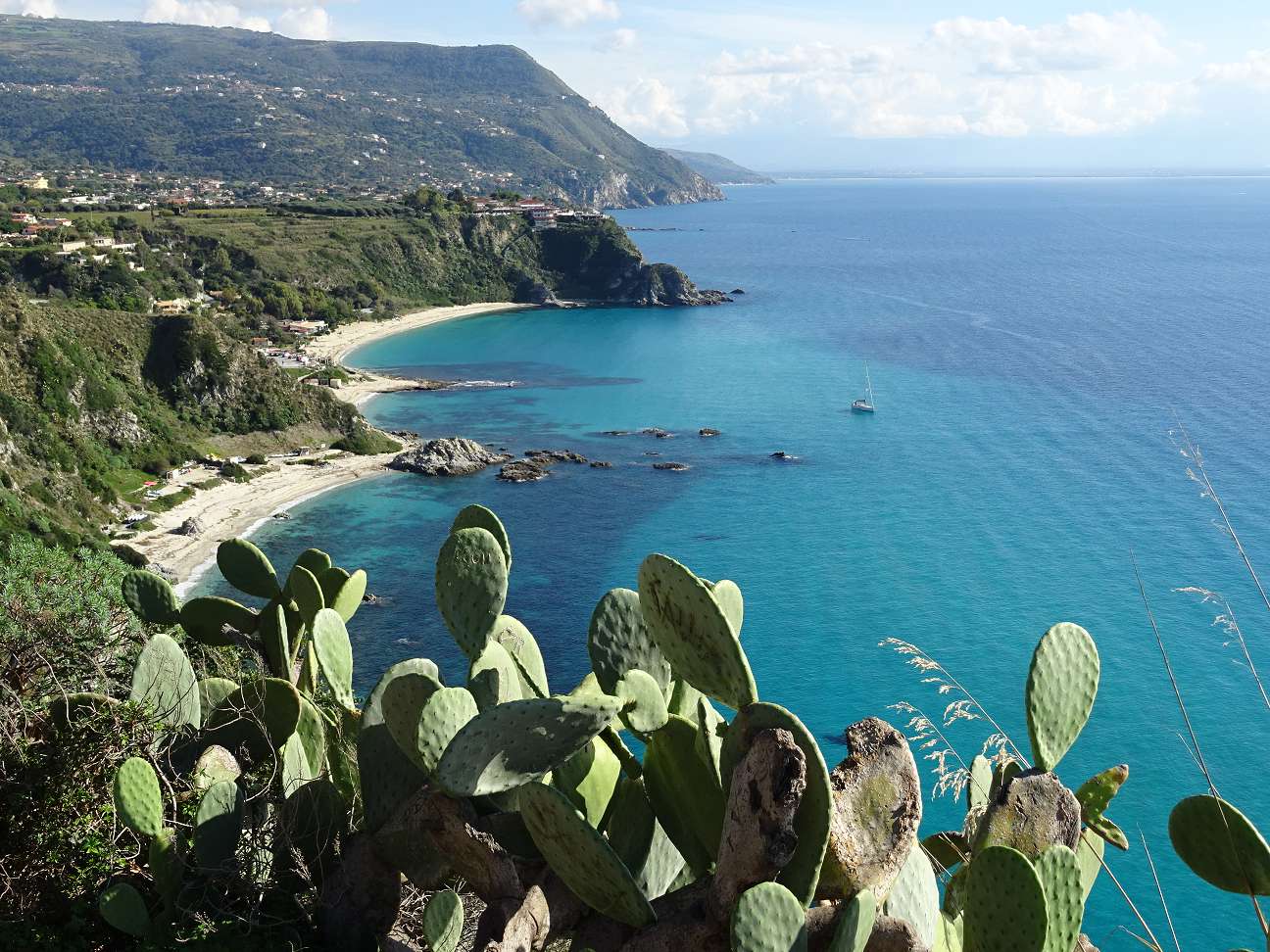 Von Pizzo nach Tropea kommt man durch mehrere Orte, wenn man direkt an der Küste bleibt. Es gibt aber auch eine Umgehungsstraße, die wir befuhren. Durch die enge, kurvige Straße der Unterstadt von Pizzo muss man trotzdem. Mit dem Wohnmobil sollte man dann doch durch die Oberstadt von Pizzo fahren, auch wenn die Straße steil bergauf geht. Immer wieder hielten wir an, um die schönen Aussichten zu genießen.