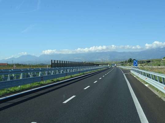 Den hohen Spritpreisen und den vielen Kilometern geschuldet ist die nächste Abkürzung der Strecke. Anstatt weiter an der Ostküste Kalabriens bis nach Reggio di Calabria entlangzufahren, bogen wir bei Corigliano Calabro nach Westen auf die Autobahn A3 (A2) ab. Zumeist verläuft die Strecke durch die Täler des Apenninen-Gebirgszuges, nur hinter Cosenza steigt die Autobahn auf 636m Höhe an. Danach geht es wieder abwärts in Richtung Tyrrhenisches Meer. Seit Neapel ist die Autobahn mautfrei, was uns um die 15,-€ ersparte.