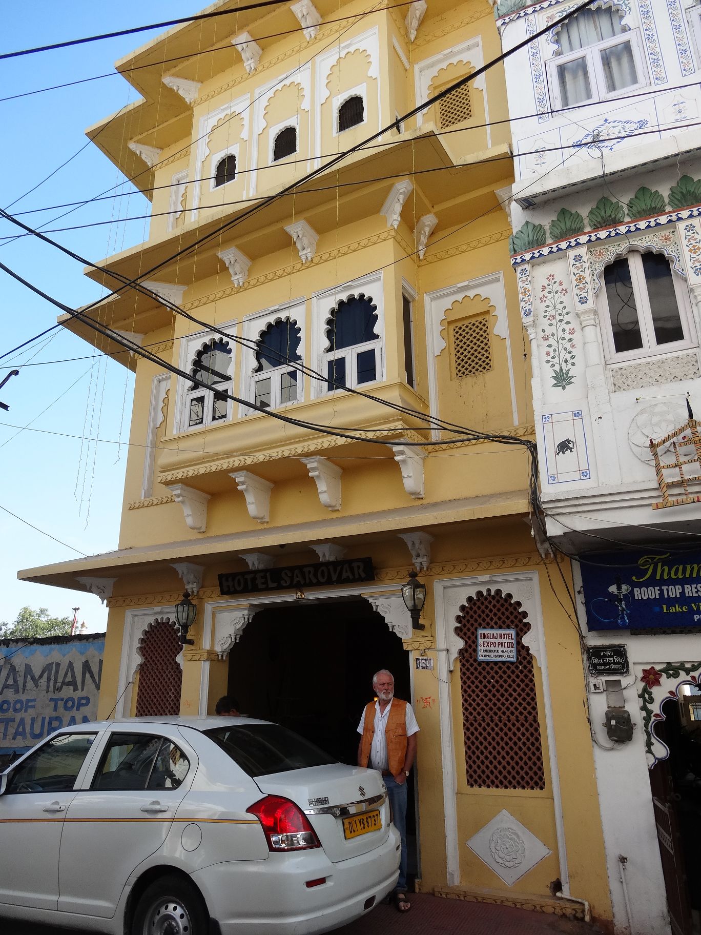 Unser Fahrer kümmerte sich dann um ein neues Hotel, was nicht so einfach war, weil wir dieses eben für zwei Nächte gebucht hatten. Der Guide, der inzwischen eingetroffen war, sprach nicht deutsch, obwohl wir einen deutschen Guide gebucht hatten. Der fuhr dann wieder weg, aber ein deutschsprechender Guide war in Udaipur nicht verfügbar. Von denen gibt es nur zwei oder drei und die waren ausgebucht. Also mussten wir uns doch mit einem englischsprechenden Guide begnügen, der dann auch erst wieder zu uns stoßen musste. So vergingen fast eineinhalb Stunden.