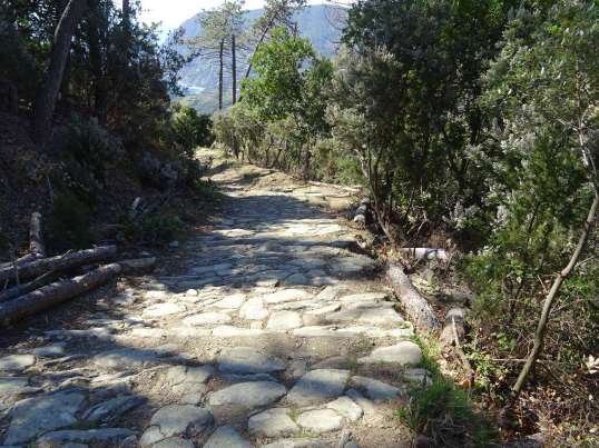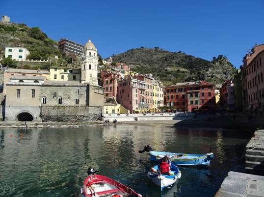 Der Abstieg erfolgt über mittelalterliche Wege (großer Stein, kleiner Stein, kein Stein) und Treppen. Ich war drei Stunden unterwegs und wollte keine weitere Etappe in Angriff nehmen. Nachdem ich mir Vernazza mit seinem schönen Hafen angesehen habe, stieg ich in den Zug zurück nach La Spezia. Der Zug fährt 95% der Strecke durch Tunnel. Man sieht das Meer nur an vier der Haltestellen und zusammen genommen weitere fünf Sekunden. Die Zugfahrt ist also keine Alternative zu Auto-/Busfahren oder Wandern.