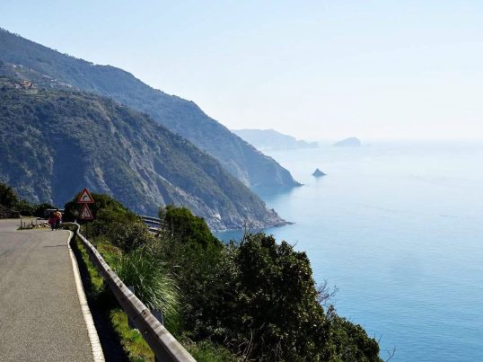 Diesem Ziel haben wir schon die ganze Tour lang entgegen gefiebert. Vom schönsten Abschnitt der italienischen Küste haben wir im Vorfeld viel im Fernsehen gesehen, von Bootsfahrten bis hin zu Wanderungen. Das wollten wir uns nicht entgehen lassen. Der Nationalpark Cinque Terre ist UNESCO-Weltkulturerbe. Die Menschen haben die Berghänge terrassiert, um Zitronen, Wein oder Oliven anbauen zu können. Dafür baute man über siebentausend Kilometer Trockenmauern. Der Park ist knapp 20km lang. Vier der fünf Orte liegen in kleinen Buchten versteckt, das fünfte auf einer Felsklippe. Jahrhunderte lang, bis in die jüngste Vergangenheit, waren diese Orte nur über das Meer oder Trampelpfade zu erreichen. Seit eine Straße gebaut wurde, die die Cinque Terre-Orte miteinander verbindet, ist der Tourismus sprunghaft angestiegen.