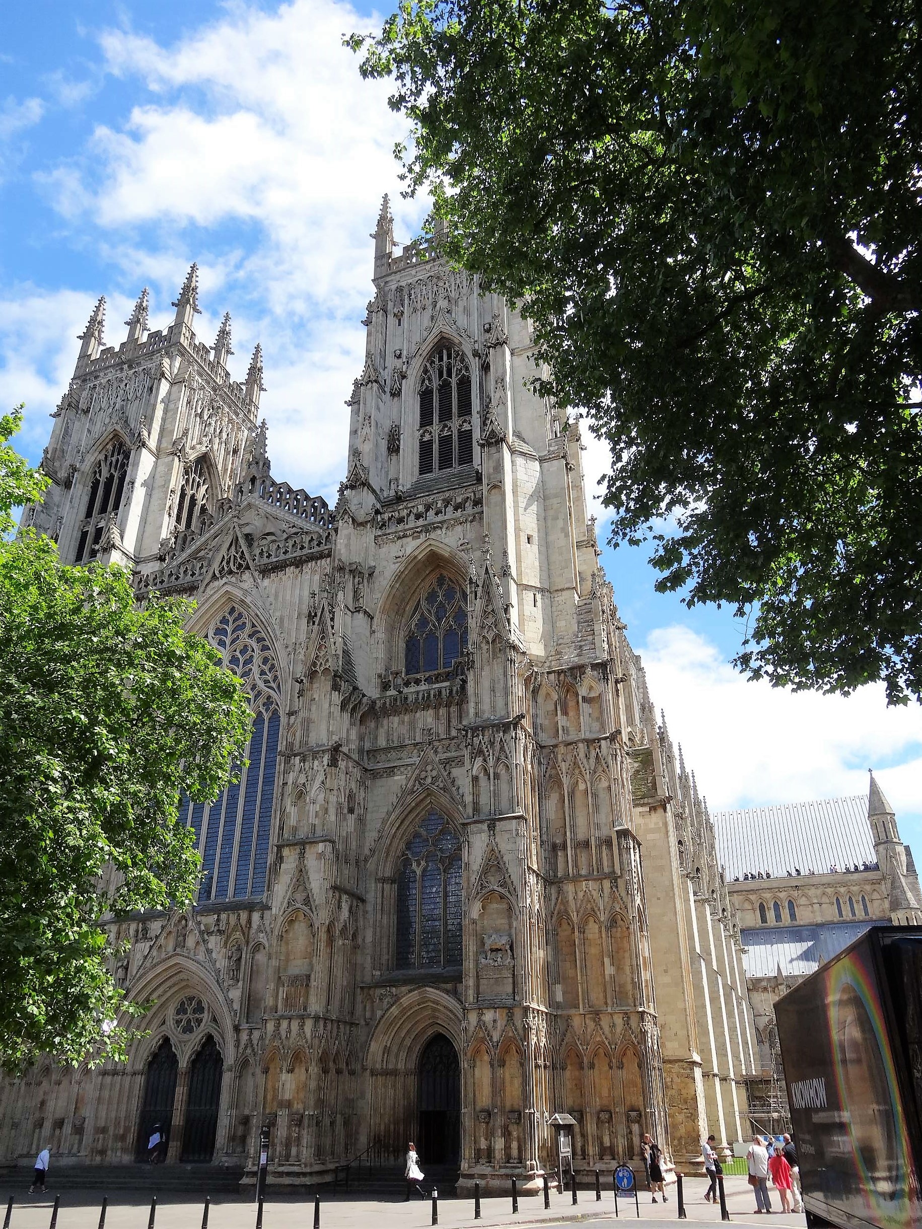Das Münster ist die größte mittelalterliche gotische Kirche in Nordeuropa. Es steht auf den Überresten des römischen Forts. Im Moment sieht man den Innenraum vom Eingang aus nur, wenn man Eintritt bezahlt. Eine Bühne verwehrt den Blick, eine große Theateraufführung steht ins Haus. Am Bauwerk selbst wird gerade Hand angelegt. Umfassende Rekonstruktionsmaßnahmen, vor allem durch Steinmetze, sind im Gange.