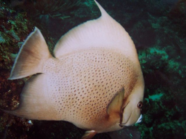 Die Sicht war gut und die Korallen und Fische sind sehr verschieden und sehr zahlreich. Manche Fische sind hier wesentlich größer, als wir sie bisher gesehen hatten. Vielleicht haben sie hier die besten Bedingungen, vielleicht fischt man auch nicht so viel, so dass sie die Chance haben, groß zu werden. Auch manche Korallen nehmen hier riesige Ausmaße an. Wir sahen verschiedene Arten von Kaiserfischen, Trompetenfische, einen Kugelfisch, Husarenfische, eine riesige Languste und viele Unbekannte.