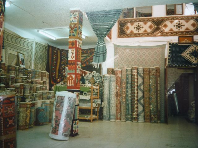 Bei einem der großen Seidenteppiche, die vor uns ausgebreitet lagen, fragten wir den Händler, wo denn der Fehler in diesem Teppich läge. Er sah uns sehr fragend an, doch wir hatten inzwischen gelernt, dass nur Allah alleine vollkommen ist und die Menschen immer Fehler machen, selbst wenn diese mit Absicht geschehen müssten. Der Verkäufer konnte oder wollte uns dazu nichts sagen. Auf einmal sagte Klaus, dass er den Fehler gefunden hat. In der Bordüre des Teppichs war ein Muster mit schwarz „ausgemalten“ Vierecken. Nur eines davon war weiß. Diesen Fehler zu finden war allerdings bei dem winzigen Muster eine Meisterleistung und ein unglaublicher Zufall. Der Verkäufer staunte jedenfalls nicht schlecht.