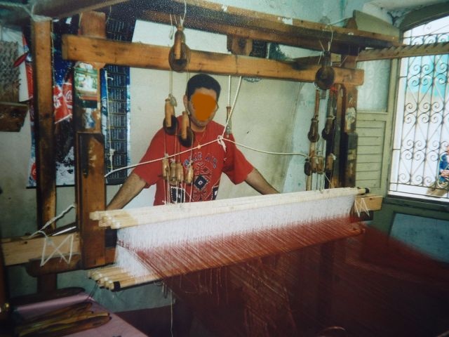 Beim Bummel durch die Gassen kamen wir an einer kleinen Weberei vorbei. Ein Weber und wahrscheinlich sein Sohn gingen ihrem Handwerk nach. Die Tür zur Webstube war offen und wir fragten, ob wir uns umsehen dürften. Wir wurden hereingebeten.