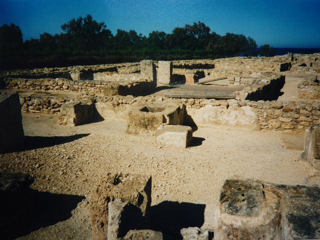 Vom Eingang bis zum Ausgrabungsfeld spazierten wir durch eine Art Botanischen Garten mit Blumen und Yucca-Palmen. Zwei, etwa parallel laufende Straßen ziehen sich durch die alte Siedlung. Dazwischen stehen Wohnhäuser, alle mit fast gleichem Grundriss. Überall sieht man Sitzbadewannen, Abflussrinnen und Fußbodenmosaike. Am dem Meer zugewandten Stadtrand stand einmal ein Tempel. Dieser Besuch ist wirklich lohnenswert.